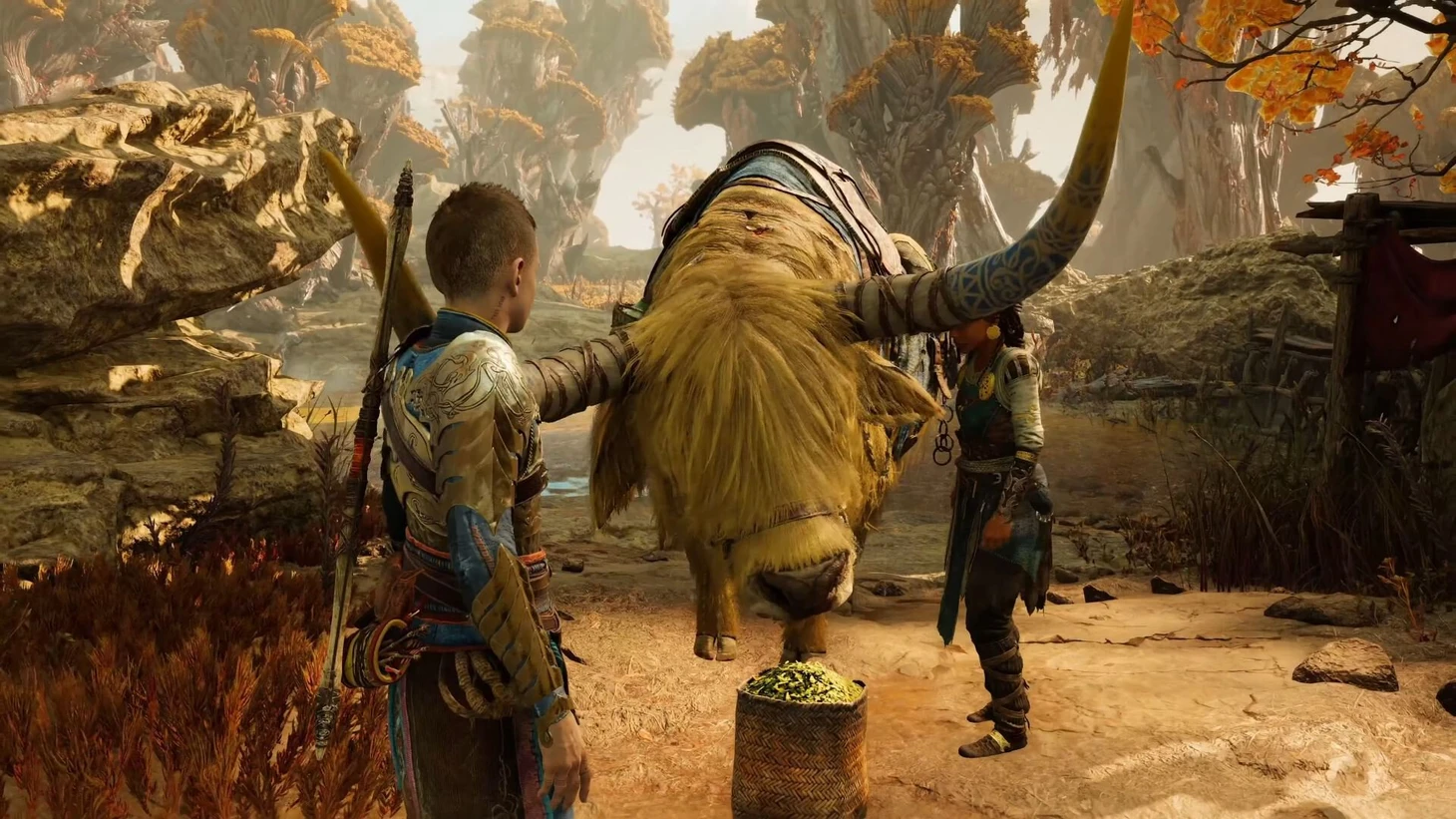 Двигаемся прямо по реке и находим фрукты. На этой части квеста никаких врагов вы не встретите. После возвращения домой Атрей и Ангрбода будут собирать корни. В какой-то момент появятся монстры, из-за которых вы упадете со спины яка. Во время битвы вы разблокируете Спартанскую ярость Атрея (L3+R3).