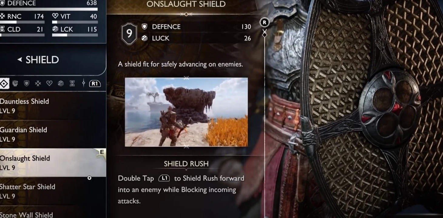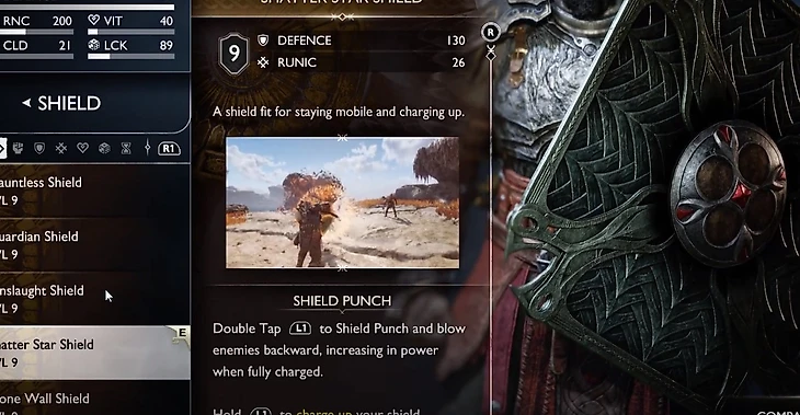 Нажимайте и держите L1, чтобы произвести зарядку щита. Когда вы блокируете атаки, заряд уменьшается.