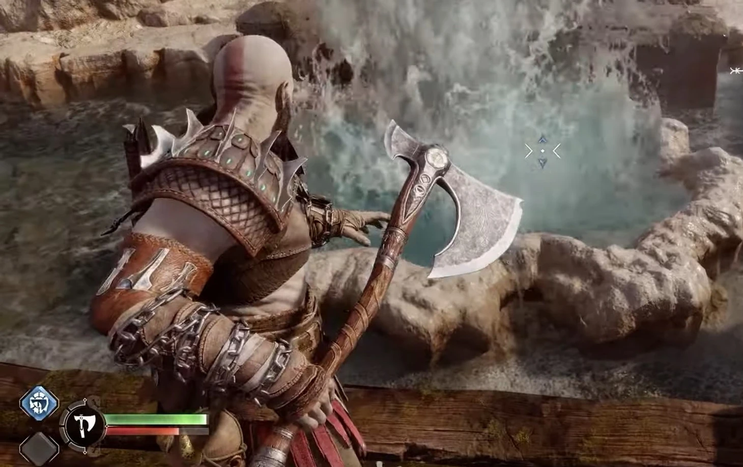 Головоломка с водяным колесом и гейзером появится в начале царства гномов Свартальфахейм. Она основана на достаточно простой механике. Вы замораживаете гейзер, используя топор-левиафан. После этого увеличивается давление и высота остальных гейзеров. Такими нехитрыми манипуляциями вы вращаете колесо и открываете ворота, чтобы освободить путь по реке.