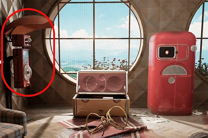 Например, такой телефон встретится в самом начале игры после пролога, когда вы познакомитесь с развратным холодильником Элеонорой. Слева от нее на стене расположен телефон для сохранений.