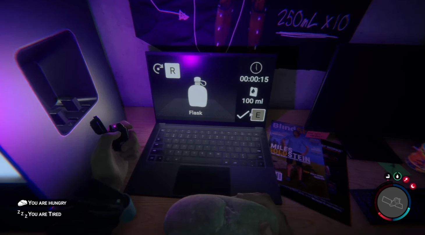 Внутри будет лаборатория. Полистайте на ноутбуке необходимые предметы, выберите фляжку (стоит 100 мл смолы) и дождитесь 15 секунд, пока она печатается.