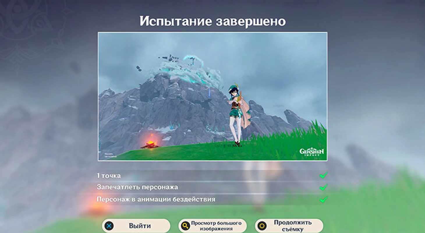 Искатель приключений Фасбен попросит помощи у Путешественников – ему нужно сделать определенные снимки по всему Мондштадту. В этом режиме вы будете фотографировать красивые виды области по заданным условиям.