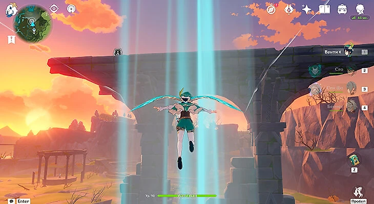 Побеседуйте с Плауэном на площадке, чтобы начать этап. На моменте сборки отряда можете добавить в отряд двух Анемо-персонажей для ускорения бега.