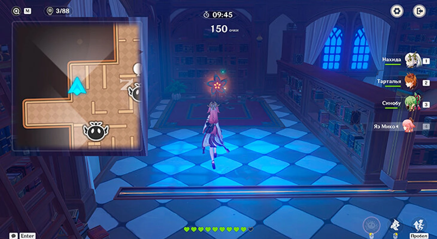 Всего в испытании три зала. Подбирайте усиления, например на скорость бега, чтобы облегчить прохождение. В конце концов за шкафами в третьем зале появится венок анемонии, то есть финиш. Запрыгивайте в него, если закончили этап.