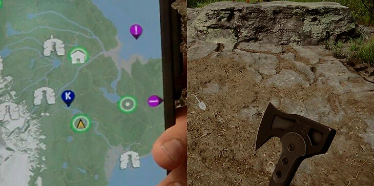 Акваланг поможет пройти пещеры, залитые водой, и другие места с ценным лутом, в которые так просто не попасть. На месте, отмеченном на карте выше, находится побережье. Вход в пещеру с аквалангом расположен среди камней, обязательно захватите с собой мощный источник света для комфортного изучения.