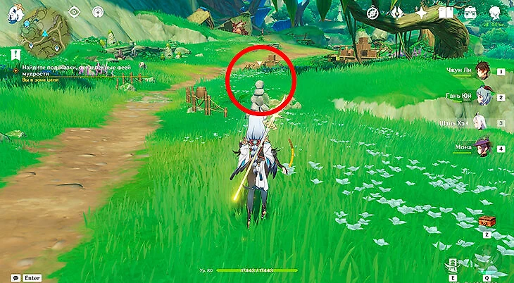 Сопроводите Лайлу в пригород Сумеру. Варианты ответа тут не влияют на сюжет. Нужно разбить камни, стоящие башенкой, чтобы продолжить сюжетную линию.