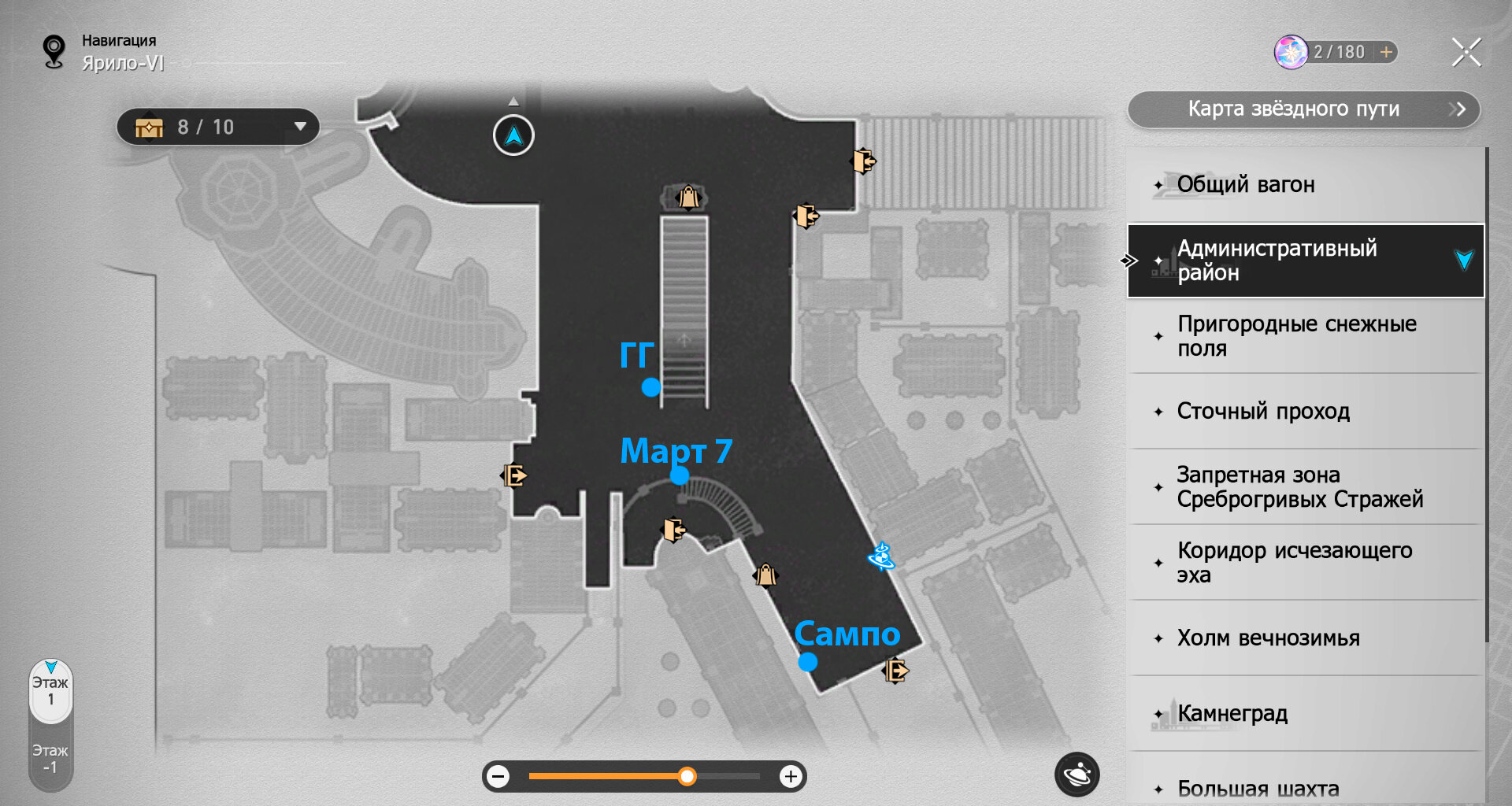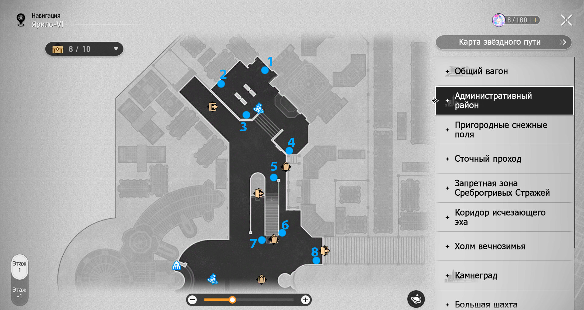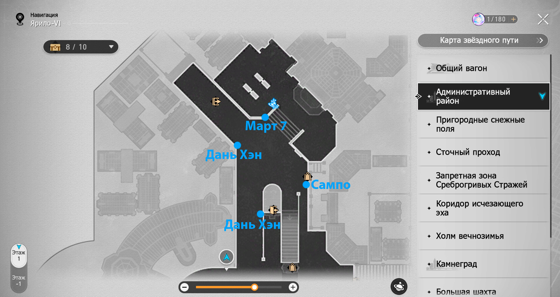 Первая карта охраняется мини-боссом в базовой зоне на правом верхнем телепорте, в месте, где Серебряный Волк и Кафка взламывали защиту «Герты». Победите врага и заберите карту из сундука.