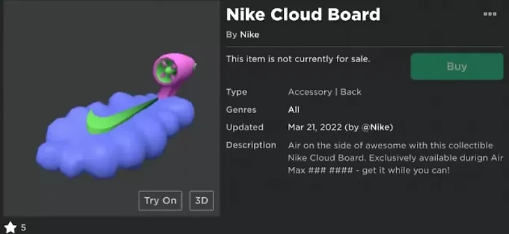 Свои предметы в онлайн-магазине Roblox размещают даже крупные бренды. Например, Nike.