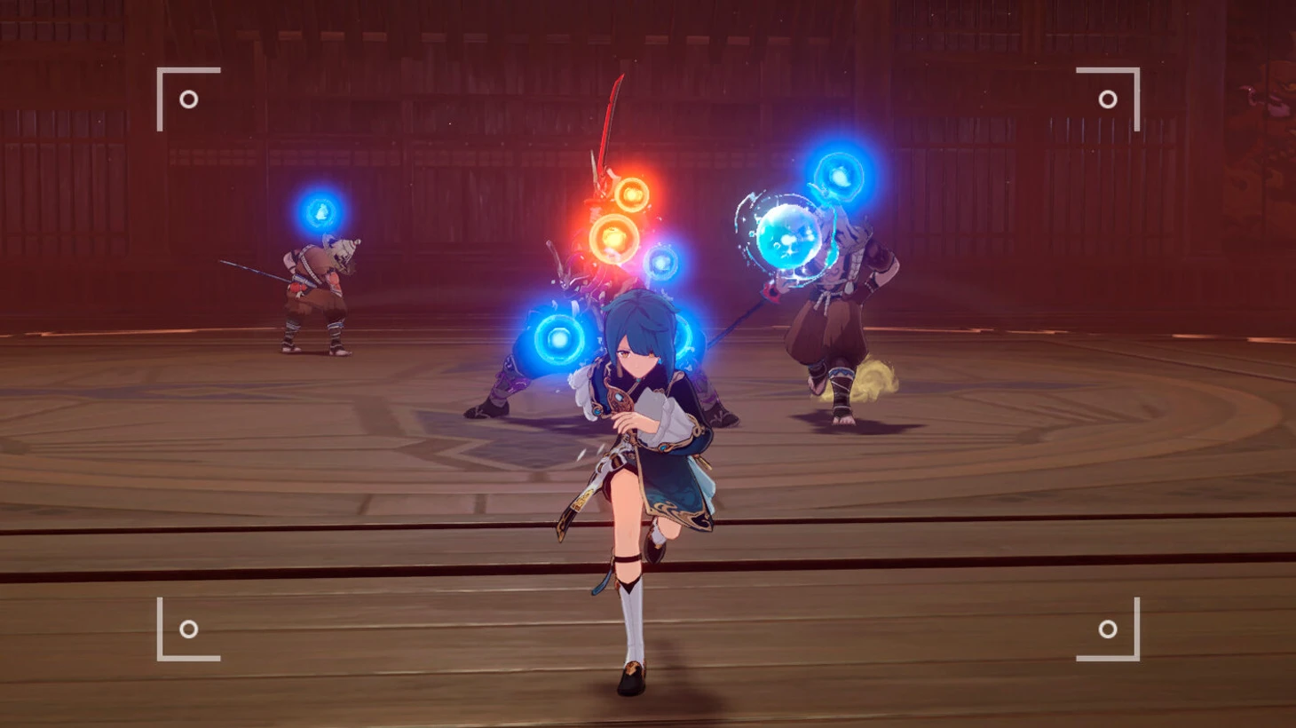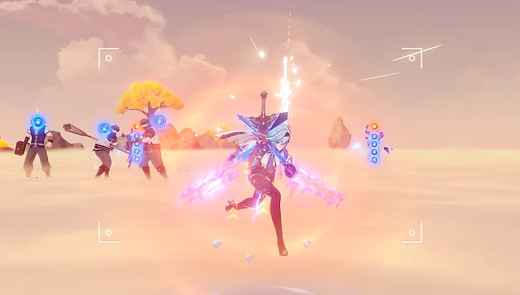 Противники – группы хиличурлов и похитители сокровищ с элитными агентами Фатуи. В этой команде нет стяжки, поэтому постарайтесь использовать вытяжку сразу, как появляются группы врагов. Желтые уязвимости есть у митачурлов, зеркальных дев и магов цицинов.