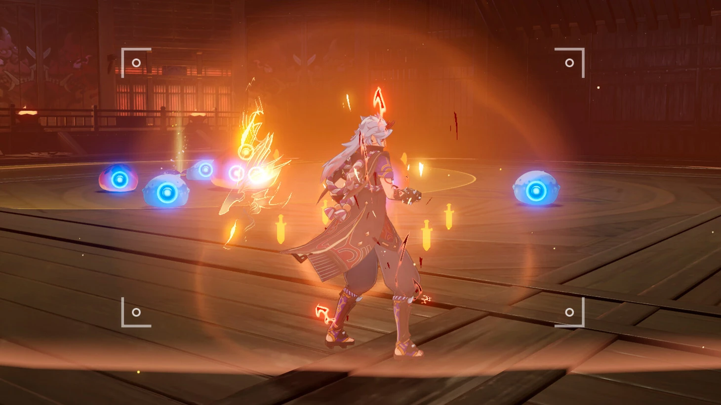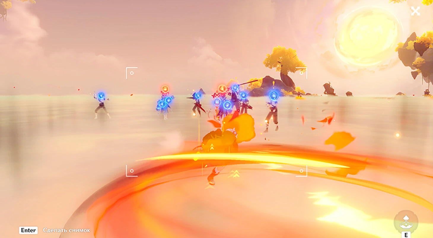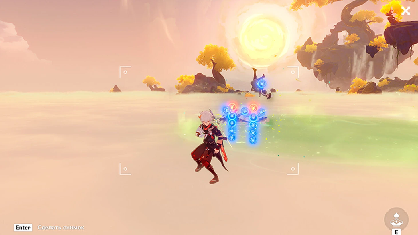 Используйте ульту и Е-шку Беннета, ульту и Е-шку Кадзухи, чтобы понизить сопротивление врагов к Пиро урону. После этого активируйте способности Сян Лин и Дэхьи. чтобы убить врагов. Но сразу всех убивать не надо, только мелких – мини-боссы (зеркальные девы Фатуи, Пустынники, митачурлы) дают большое количество очков уязвимостей. Можете отбежать и нажать на кнопку Сверхвосприятия, чтобы все «попали в кадр» – время замедлится, чем больше уязвимостей попадет в кадр, тем больше будет бонусный урон. За оранжевые уязвимости дают больше очков.