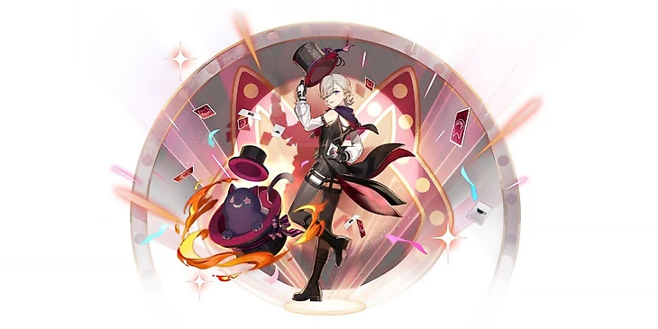 Лини превращает себя в Вызывающего улыбку кота. Кот может быстро перемещаться и при приближении к сопернику поджигает его. Когда заканчивается длительность, Лини использует элементальный навык, взрывает Шляпу, наносит урон и создает новую Шляпу. Также добавляется 1 стак Излишков реквизита.