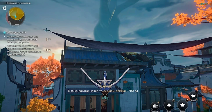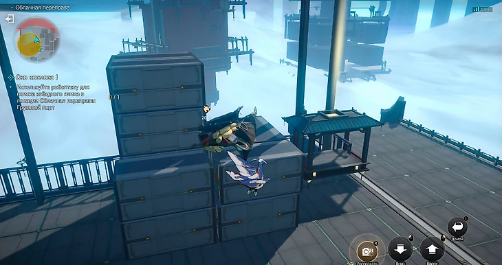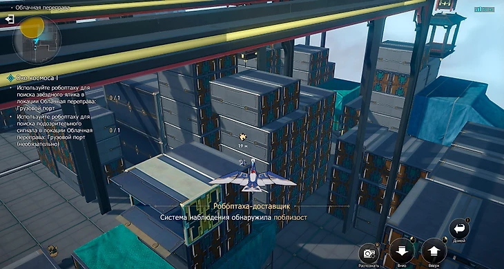 Поблиззости обнаружится подозрительный сигнал в локации Облачная переправа: Грузовой порт. Можно не искать его по заданию, но на всякий случай – нужно подняться на самый верх и сделать фото сломанной робоптахи.