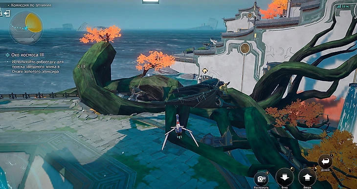 Поговорите с Цзыцяо. На этот раз побеждать врагов и чинить робоптаху в начале не потребуется. Она отправит на поиски яликов у Очага золотого эликсира. Ялик упал на гигантские корни позади Очага.