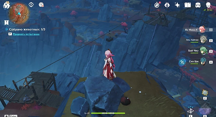 Поиски продолжаются, на этот раз сбежали лазурный журавль Бутылкоклюй, алый зяблик Щебетун и алый лис Ночной свистун. Отправляйтесь в Разлом. Лис смотрит с высоты на кран и площадку с обломанной лестницей. Это место находится наверху над стартом, воспользуйтесь Анемо пластиной для прыжка.