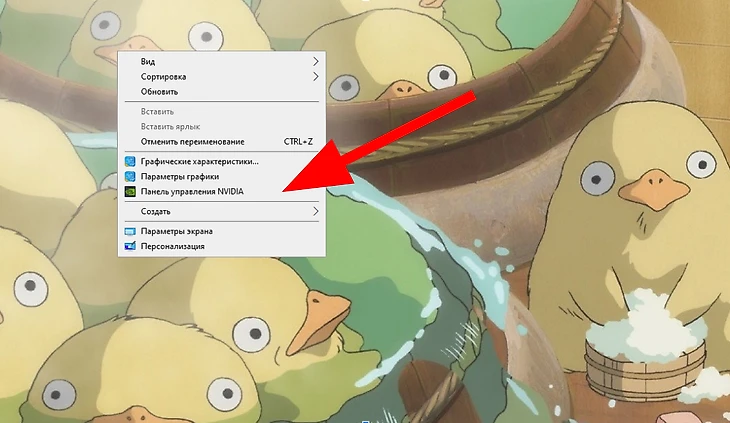 3. Включите высокую производительность вашей видеокарты. Для этого зайдите в панель управления видеокартой. На рабочем столе кликните правой кнопкой мыши (ПКМ) по любому свободному месту — должно открыться меню проводника. В нем в большинстве случаев должна быть ссылочка на панель графики.