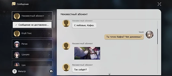 Письмо незнакомки в Honkai Star Rail – все ответы Кафки