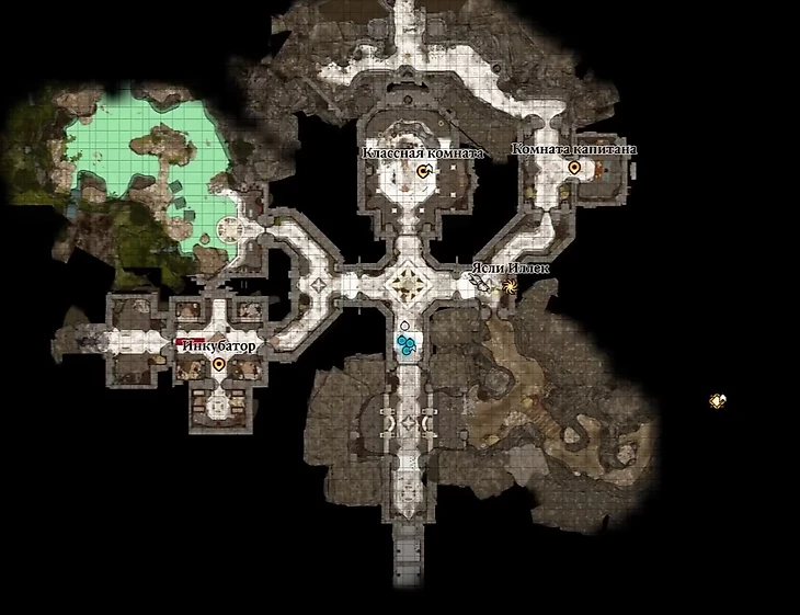 Идите вперед и сверните направо у рунного камня Ясли Иллек. Следуйте на север по коридору и попадете в Комнату капитана.