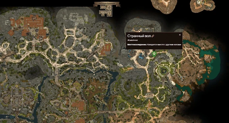 Впервые игрок замечает вола еще в первом акте — в Роще друидов (Изумрудная роща): справа от тропы можно заметить небольшой загон с волами. На первый взгляд все они покажутся одинаковыми, однако при наведении курсора на одно из животных появится имя персонажа – «странный вол».