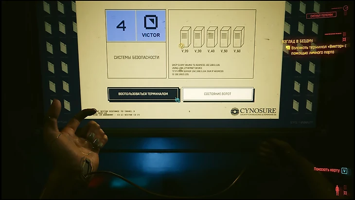 Подойдите к терминалу «Виктор», поднимитесь по небольшой лестнице и взломайте его, а затем отключите его.