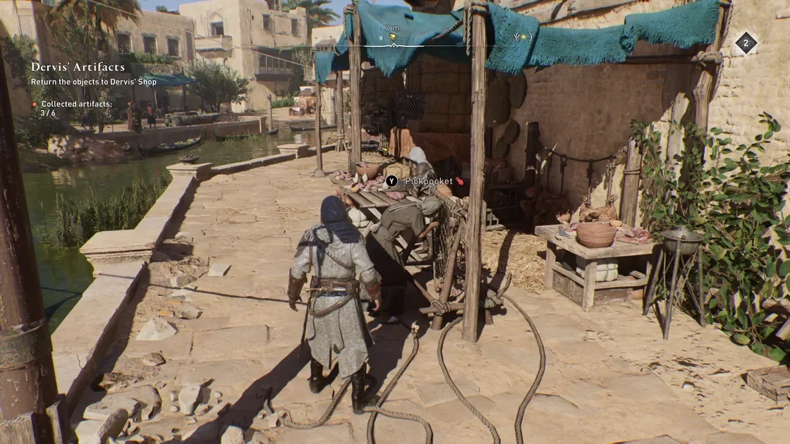 Чтобы подобрать артефакт Дервиша вам нужно совершить карманную кражу определенных NPC в игре Assassin’s Creed Mirage. В каждом игровом районе будет от 4-х до 3-х Dervis Artefacts. Открыв карту, вы сможете посмотреть сколько артефактов осталось в конкретном районе Багдада.