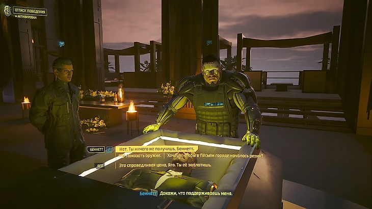 Пойдя по третьему пути и заставив Сабо принять условия, вам откроется две развилки: указать на неуважение к Хансену, что повлечет за собой согласие в ответ на требования, или достать оружие, после чего Беннетт направит на Яго пистолет.