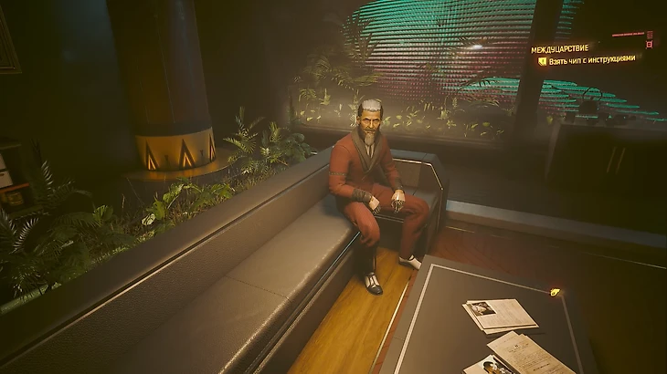 Для этого вам придется притвориться известным наемным убийцей по имени Агилар. Закончив диалог, подберите со стола чип с дополнительной информацией, а также костюм, оттиск и оружие киллера.