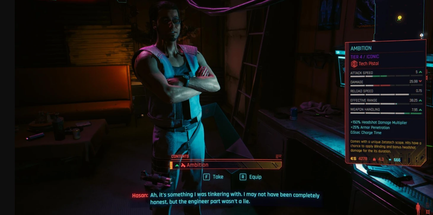 Пройдите по указателю задания и пообщайтесь с Хасаном. В случае вашего спасения Хасана от Зетатеха и мистера Хэндса, он выразит свою благодарность, вручив вам культовый пистолет «Стремление».