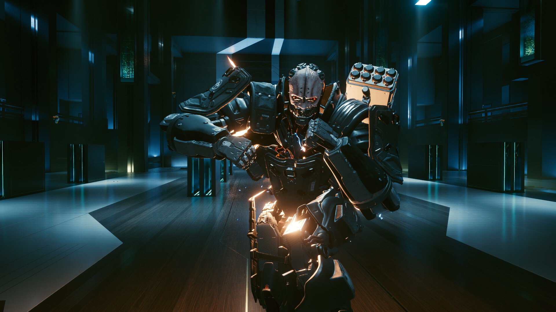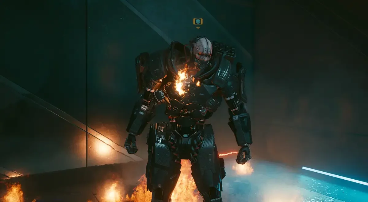 Отправляйтесь к двери, на которую укажет маркер. Перед тем, как вы откроете двери проверьте свое снаряжение – экипируйте все гранаты, а также Тех и химическое оружее. Оно высокоэффективно против сильнейшего бойца Еринобы, убийцы Джонни Сильверхенда – Адама Смэшера.