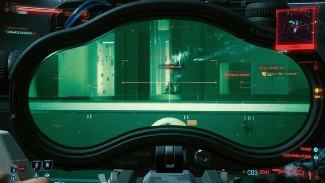 Поднявшись на второй этаж, постарайтесь быстро устранить двух патрульных. После чего выведите из игры трех противников напротив вас. Легче всего в первую очередь устранить нетраннера, который может нанести слишком много урона.