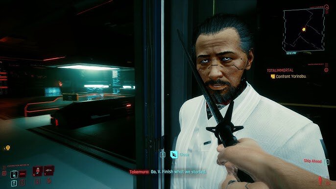 Попав в лифт, выберите Верхний Атриум (Upper Atrium). В этом моменте у вас появится развилка. Если в квесте «Квартира №303» вы пощадили Такэмуру, то он присоединится к вам и предложит помощь своих бойцов. У вас будет выбор ответить ему “Yeah. Too late to play nice”, что заставит его солдат зарашить противников в Верхнем Атриуме. Или же вы можете ответить «No. Better to be sly and quiet», что подразумевает стелс-прохождение. Если Такэмура не выжил, то у вас все равно будет этот выбор, но двигаться дальше придется без поддержки.