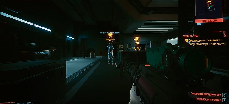 Это короткий путь в комнату охраны, поэтому это значительно сэкономит вам время, просто устраните единственного врага и нетраннера. Так же можно спуститься по лестнице справа от пункта управления ТПК на нижний этаж. Эту область охраняет несколько врагов, но здесь есть много объектов, за которыми можно укрыться.