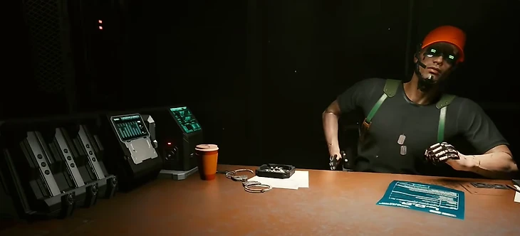 Далее их приглашают на пост, чтобы встретиться с офицером. Ви оставляет свое оружие у дверей и входит в офис. Там офицер проверяет удостоверение Ви и интересуется, к какому клану он принадлежит. Ви подсовывает офицеру взятку.