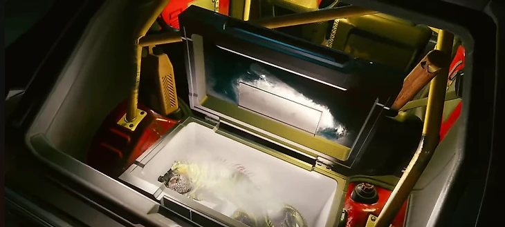 Перед тем как въехать в город, Джеки решает сделать остановку на маленькой забытой ферме на просторах «Биотехники», чтобы разработать план. Здоровяк признается, что первоначальная идея была обмануть Ви ради денег, однако в итоге он отвергает этот план. Джеки и Ви решают узнать, какой груз они перевозят. В грузовом ящике «Арасаки» они обнаруживают живую игуану.