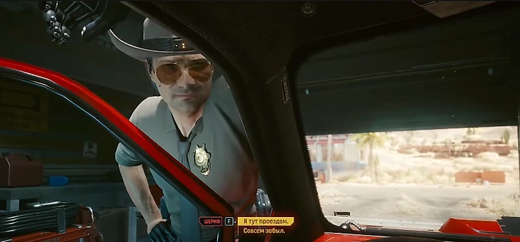 Ви узнаeт, что имя механика – Майк. Подойдя к автомобилю Ви, шериф сообщает, что первым делом стоило заехать к нему. В ответ на это, Ви говорит, что надолго тут не задержится. Шериф представляется, как Эндрю Джонс и спрашивает Ви, знаком ли он с ним. Ви отвечает отрицательно, что вызывает недовольство шерифа. Он предполагает, что Ви – кочевник и принимает это с недовольством. Однако, несмотря на это, шериф всe равно позволяет Ви уехать.
