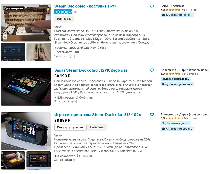 На Авито цена Steam Deck варьируется в районе 70-80 тысяч.