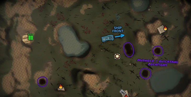 Дождливая: С этой погодой довольно легко справиться. Вам придется беспокоиться только о зыбучих песках/грязевых ямах, которые появляются случайным образом. Это большие темно-коричневые пятна на земле. Если вы случайно наступите в такую яму, то сможете выбраться, если у вас достаточно выносливости.