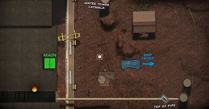 Чтобы ускорить процесс поиска, можно сбрасывать предметы с трубы рядом с кораблем, если вы идете от пожарного выхода – только будьте осторожны, чтобы не соскользнуть!