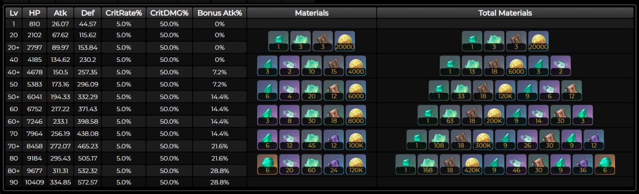 Для прокачки Сянь Юнь понадобятся: