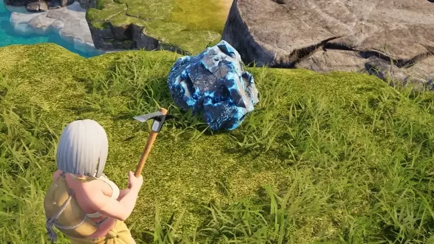 Чаще всего прииски палдиума появляются рядом с реками и водоемами. Лучше всего внимательно изучить стартовую локацию – разработчики насыпали необходимый на ранних стадиях игры материал в избытке. Добывать ее еще проще, вам необходимо создать на примитивном верстаке из пяти камней и пяти кусков дерева кирку и просто долбить ей руду. С каждого такого прииска вы получите от 6 до 8 фрагментов палдиума.