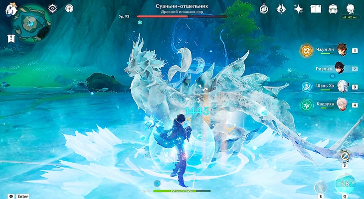 Рекомендуется взять в отряд хотя бы одного Крио героя и одного Гео или героя с двуручным мечом, либо Ризли, чтобы сделать ачивку «Пульс ледяного ветра». Когда босс будет входить в Гидро стадию и накапливать заряд, нужно ударить Крио по нему. Он замерзнет, и вы должны сделать реакцию Разбит с помощью Гео, удара двуручным мечом или заряженной атакой Ризли. А если вы не собираетесь фармить и убивать зверя, можно взять Сяо или другого персонажа с Сянь Юнь, чтобы вызвать Разбит атакой в падении.