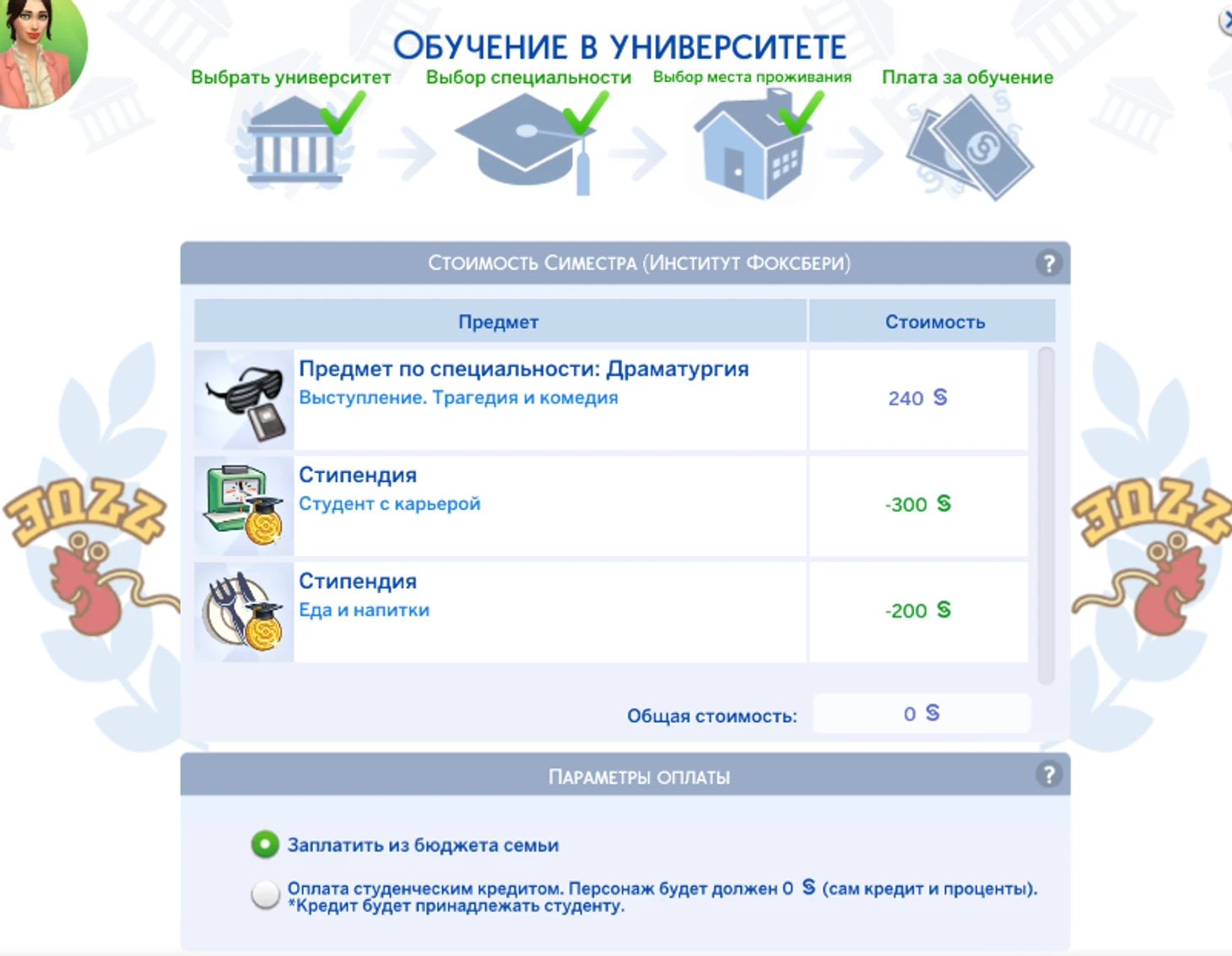 Оплата обучения в Симс 4