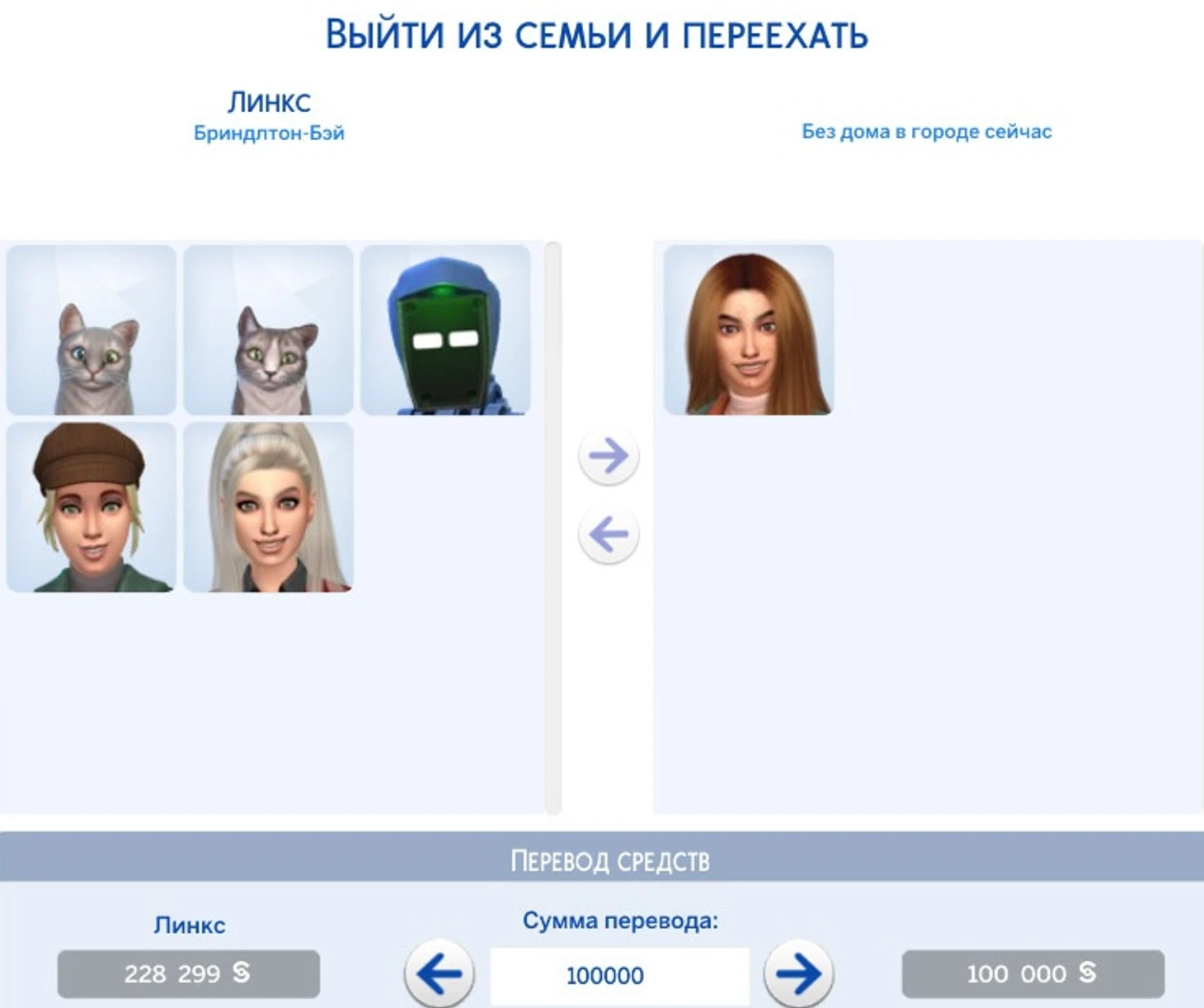 Если выбирать последний вариант, то это может быть абсолютно любой дом, хоть с другого города. Главное, чтобы у вас хватило средств на покупку. В этом случае переезд будет осуществлен сразу же после завершения регистрации через меню разделения семей и перевода средств, так что нужные вещи лучше собрать заранее.