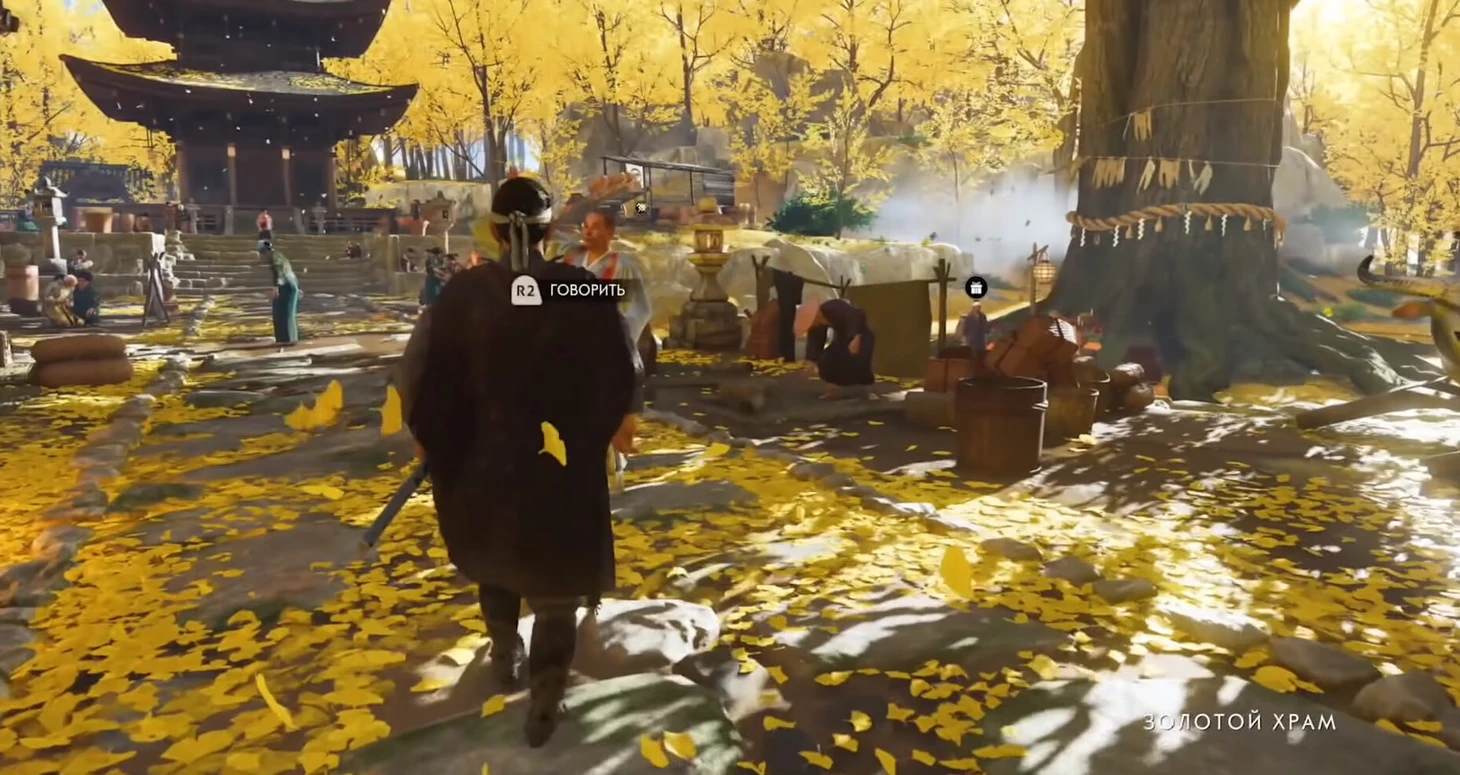 При взгляде на Золотой Храм с высоты, внимательно изучите окружающую территорию, чтобы обнаружить Согена. Его легко заметить непосредственно под смотровой площадкой, где он беседует с парой местных жителей.