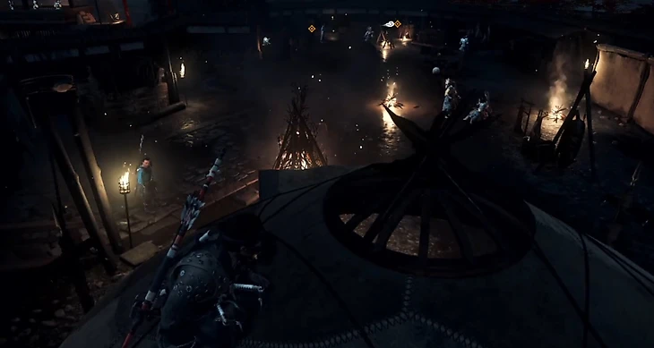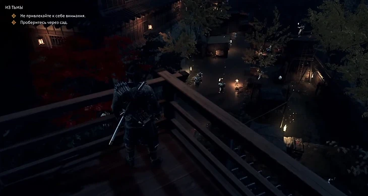 Точка для разведки находится в одном из углов балкона, расположенного на втором уровне башни. Как и всегда, игрокам предстоит открыть и осмотреть несколько зон. Также обратите внимание на тропинку, пролегающую через сад, на соломенные шляпы стражников и на монгольские оборонительные сооружения – все эти детали помогут вам составить оптимальный план проникновения и отступления. Тщательно изучите обстановку, продумайте свой маршрут.