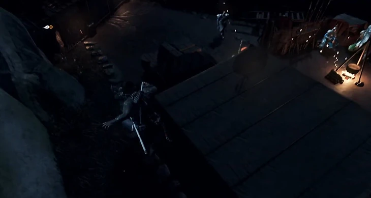 Оказавшись на новой позиции, взберитесь на крышу палатки и воспользуйтесь очередной веревкой, чтобы пересечь открытое пространство. Это позволит вам миновать часть охранников, не вступая с ними в прямую конфронтацию. Достигнув последней палатки, выждите момент, пока один из стражников не окажется прямо под вами, и прыгните на него сверху. Так вы сможете быстро и эффективно нейтрализовать этого противника.