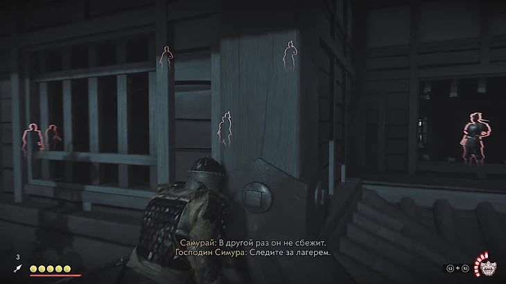 После того, как они завершат диалог, Симура поднимется по лестнице еще выше. Когда охранники отвлекутся, поднимайтесь за ним. Откройте дверь и незаметно пройдите прямо мимо двух монголов. Вы окажетесь в комнате с белой тканью на окне. Пройдите через окно, зайдите в свою комнату и подберите припасы.
