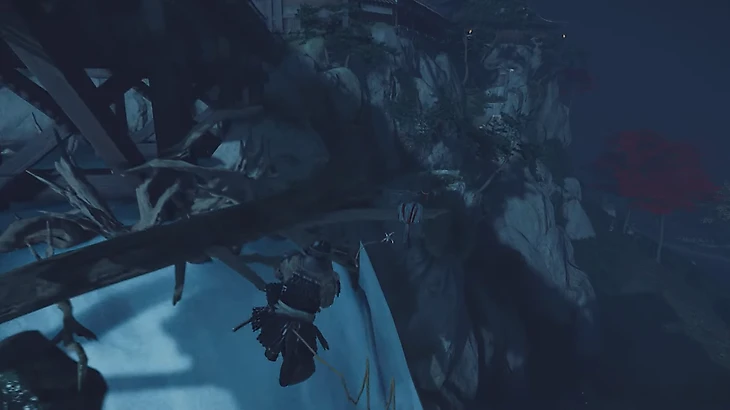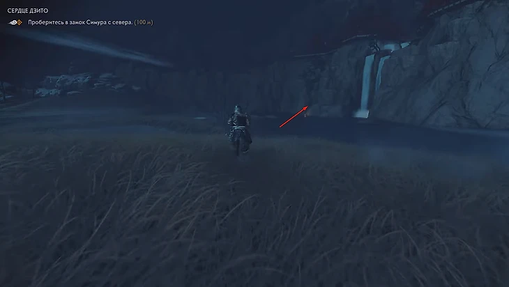 Отправляйтесь к северным стенам замка Симура. Здесь вы можете использовать быстрое перемещение. Оказавшись перед водопадом, вы увидите воспоминание из детства Дзина. Идите к выступу слева от водопада.
