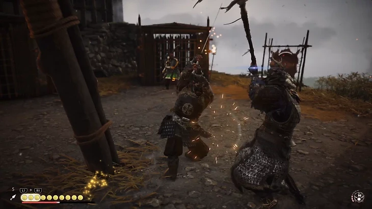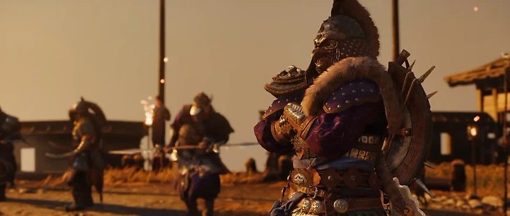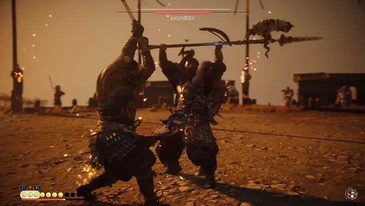 Вы никогда не сможете нанести более двух-трех ударов подряд, после чего ваш противник снова начнет блокировать. Хунбиш – фиолетовый монгол, а значит, он будет периодически переключаться между щитом, копьем и мечом, поэтому соответственно меняйте стойку Дзина, чтобы открыть больше возможностей для идеального парирования, уклонения и контратаки.