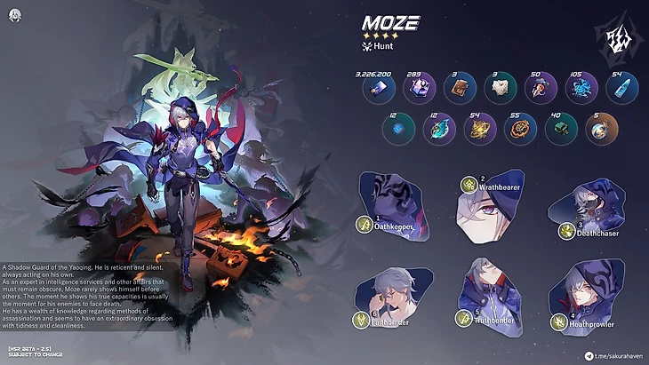 О роли и деталях: Он следует Пути Охоты и наносит Электрический урон, выступая в бою как мастер бонус-атак и метки «Жертва». Он является членом Теневого дозора – элитного спецподразделения под командованием генерала Фэйсяо.