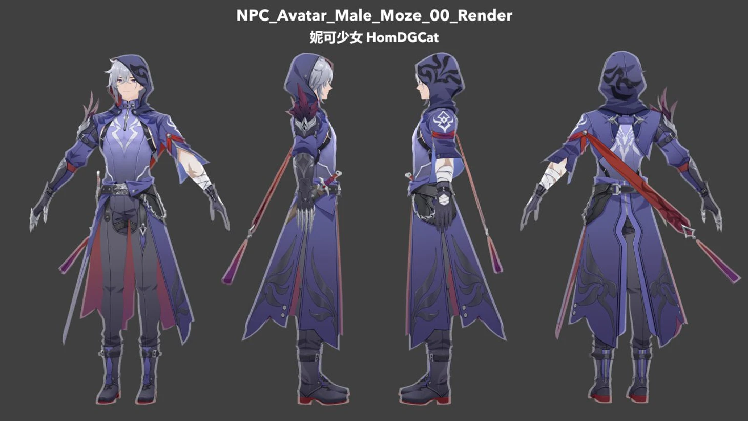 О внешности: Описание внешности Моцзэ – это образ идеального и молчаливого убийцы, скрывающегося в тенях. Одетый в черную одежду с пестрыми акцентами, он практически сливается с окружением. Его точный рост официально не раскрыт.